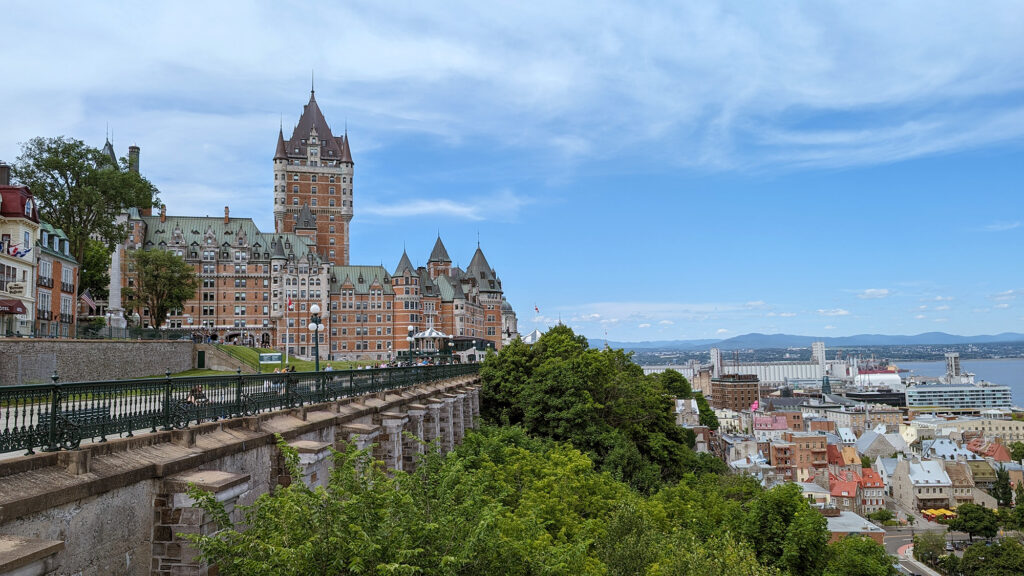 Heute (21.06.24) rollern wir rein nach Québec. Heute mal nicht auf Autorädern, sondern auf Rollschuhen. Wir parken außerhalb der Stadt am Fluss und wechseln dort in die Rollschuhe. Die Rollschuhe verhelfen uns direkt zu einer Bekanntschaft mit einer Einheimischen, die selbst auf Inlinern unterwegs ist. In einem kurzen Gespräch schwärmt die Frau uns von der Provinz Québec vor und gibt uns so viele Tipps für Unternehmungen in der Region, dass es uns schwerfällt alles zu merken. Leider reicht uns die kurze Zeit, die wir hier verbringen nicht annähernd aus, um diese Tipps in die Tat umzusetzen.